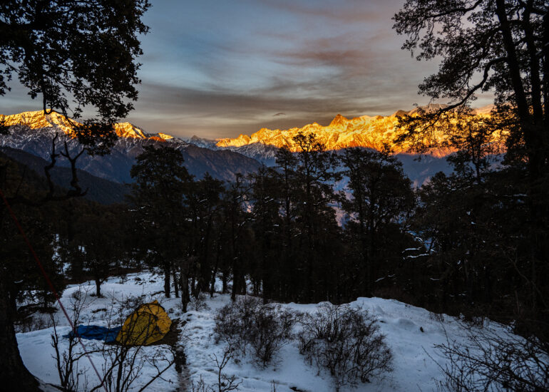 At dusk, the Himalayas learn to breathe in light.The sun, retreating without haste, leaves behinda last, trembling warmth—and the mountains catch it like a...